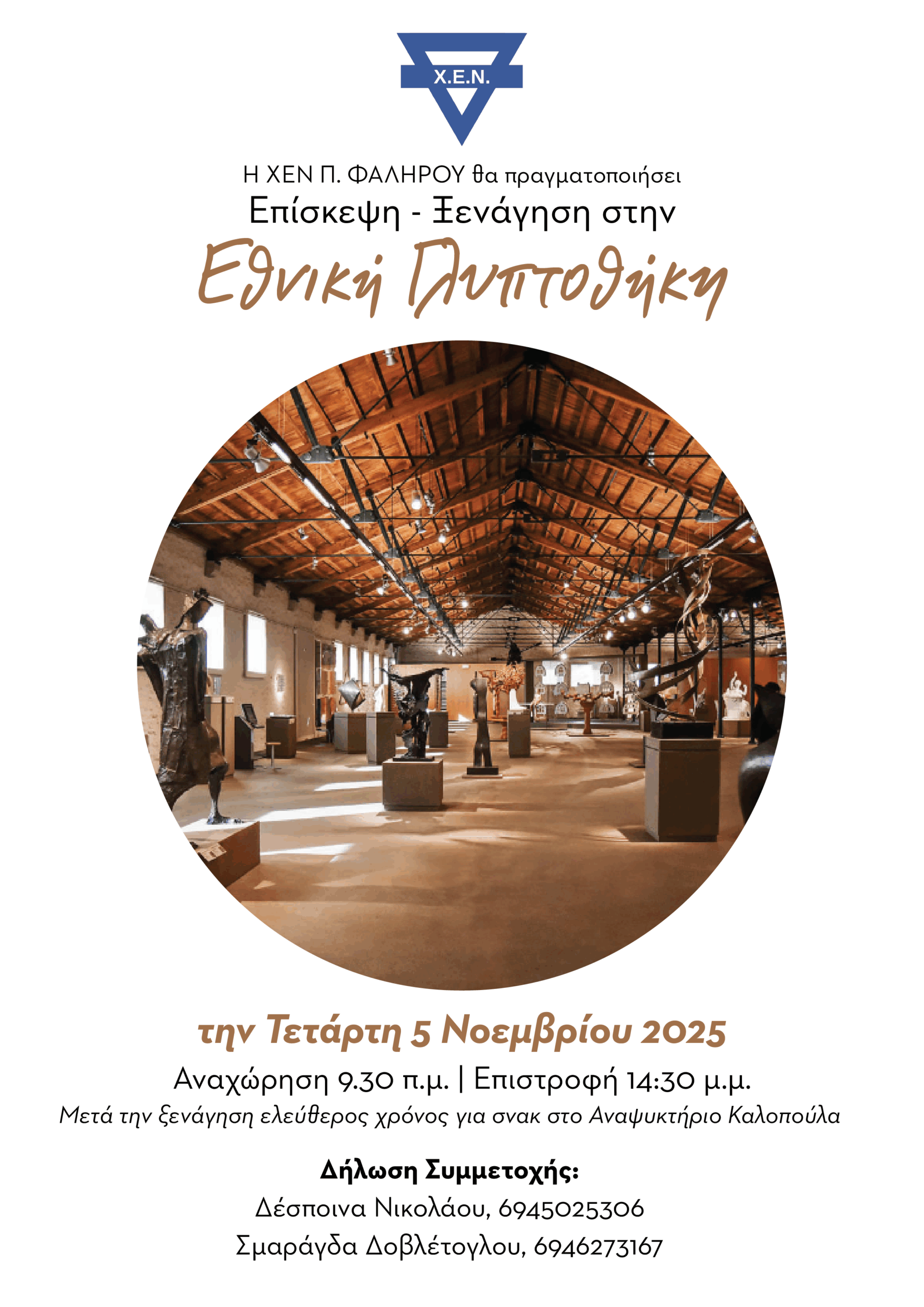 ΧΕΝ Παλ. Φαλήρου: Ξενάγηση 05 Νοεμβρίου 2025 - 09:30 Εθνική Γλυπτοθήκη Συμμετοχή ◄ Προηγούμενη Ανάρτηση Επόμενη Ανάρτηση ► Αίτηση Συμμετοχής στην Εκδήλωση : ΧΕΝ Παλ. Φαλήρου: Ξενάγηση Όνομα * E-Mail * Διεύθυνση Κατοικίας Επώνυμο * Τηλέφωνα * Επάγγελμα Πρόσθετες Πληροφορίες Εγγραφή στο ενημερωτικό δελτίο της ΧΕΝ Αθηνών Τα στοιχεία που μας παραχωρείτε αποτελούν προσωπικά δεδομένα και τα διαχειριζόμαστε σύμφωνα με τις διατάξεις του Γενικού Κανονισμού Προστασίας Δεδομένων Προσωπικού Χαρακτήρα (GDPR, EE 2016/679) και του Ν.2472/1997 όπως έχει τροποποιηθεί από το Ν.3471/2006 και ισχύει σήμερα. Συνεπώς, δεν πρόκειται να αποκαλυφθούν σε τρίτους ή να χρησιμοποιηθούν για άλλο σκοπό, πέρα από την επικοινωνία και την ενημέρωσή σας σχετικά με τις δράσεις της Χ.Ε.Ν Αθηνών. Αποστολή