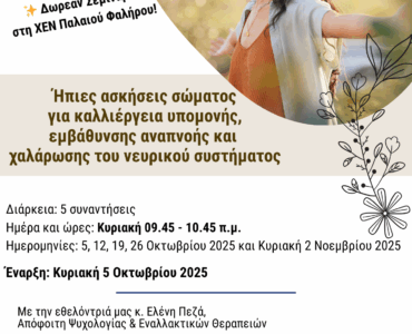 Διάρκεια: 5 συναντήσεις Ημέρα και ώρες: Κυριακή 09.45 - 10.45 π.μ. Ημερομηνίες: 5, 12, 19, 26 [...]