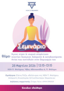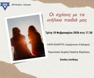 «ΜΕΓΑΛΩΝΟΝΤΑΣ ΣΕ ΔΥΣΚΟΛΑ ΠΕΡΙΒΑΛΛΟΝΤΑ» Η ΧΕΝ Αθηνών σας προσκαλεί στον Κύκλο Διαλέξεων με θέμα το Παιδί [...]