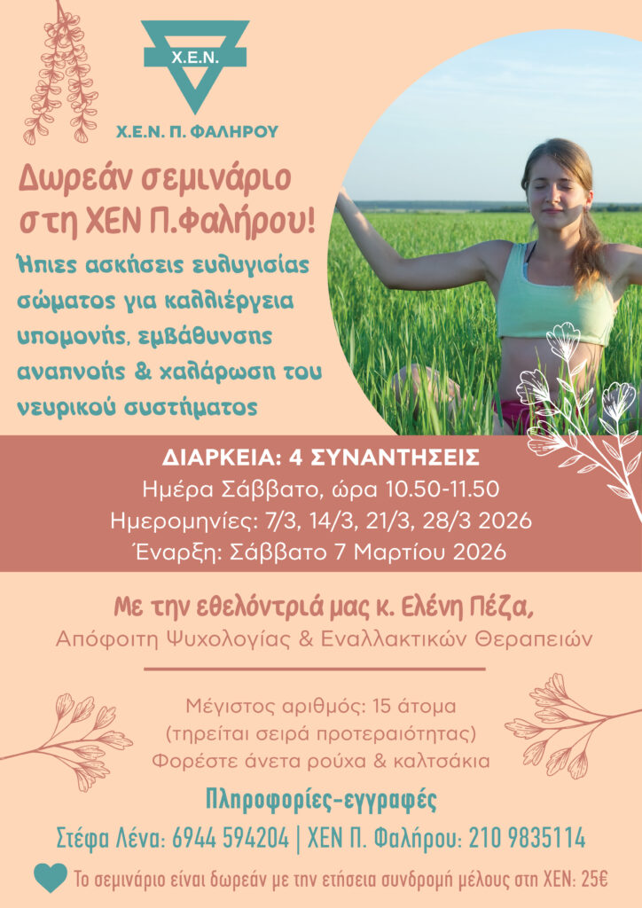 Η ΧΕΝ Αθηνών σας προσκαλεί στην Εκπαίδευση - Ενημέρωση Εθελοντριών που θα πραγματοποιηθεί τα Σάββατα 10 ή 24 Νοεμβρίου (επιλογή) από τις 10 πμ έως τη 1 το μεσημέρι. [...]