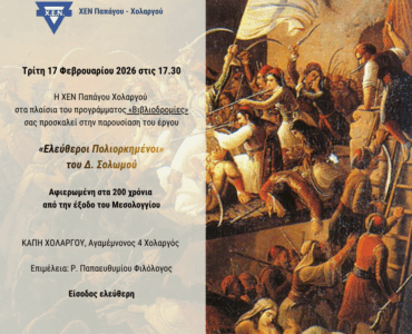 Τρίτη 3 Φεβρουαρίου 2026 στις 17.30 Η ΧΕΝ Παπάγου Χολαργού στα πλαίσια του [...]